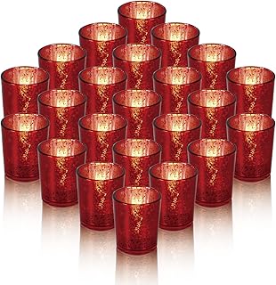奉納キャンドルホルダー マーキュリーガラス ティーライトキャンドルホルダー 48個セット 結婚式やパーティーに最適なセンターピース(赤)
