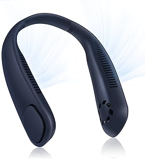 ネックファン ハンズフリー 首掛け扇風機 ポータブルファン ネッククーラー 羽無し USB充電 ヘッドフォン型 静音 3段階風量調節 マスク蒸れ対策 色:ネイビー