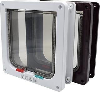 AeeYui ペットドア 犬猫出入り口 キャットドア 4way 猫 小型犬 ペット用出入り口 室内用 冷暖房対策 扉 ガラス 取り付け簡単 静音 キャットドア 勝手口 ホワイト