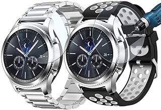 Valkit Gear S3 Frontier/Classicバンド 22mm ステンレススチール ソリッドリストバンド+ソフトシリコン通気性スポーツストラップ+スクリーンプロテクター交換用 Gear S3 Frontier/Classic/Galaxy Watch 46mm