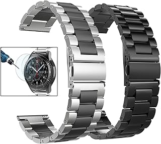 Valkit Gear S3 Frontier/Classic/Galaxyウォッチバンド 22mm ステンレススチール ソリッドリストバンド メタルストラップ ビジネスブレスレット + スクリーンプロテクター 交換用 Gear S3 Frontier/Classic/Galaxy Watch 46mm