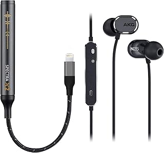 Maktar ヘッドホンアンプ Spectra X2 イヤホン付きセット AKG N25 インイヤーイヤホン ハイレゾ対応 HiFi ポータブルヘッドホンアンプ Lightning 3.5mmジャック iPhone イヤホン変換アダプタ iPad対応 カナル型イヤホン 重低音 hi-res 有線 マイク付き リモコン 通話可能 音量調整 スマホ
