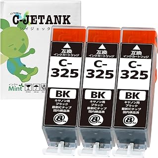 CANON(キャノン) BCI-325XL(BK/ブラック)×3本セット 新互換インクカートリッジタイプ 最新型ICチップ対応 残量表示あり 取扱説明書付き【三大保証1年パック対応】【Mint製】