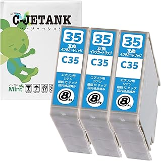 ICC35(C/シアン)-3本セット【色えんぴつ】 エプソン用 新互換インクカートリッジタイプ 最新型ICチップ対応 残量表示あり 取扱説明書付き 【三大保証1年パック対応】【Mint製】