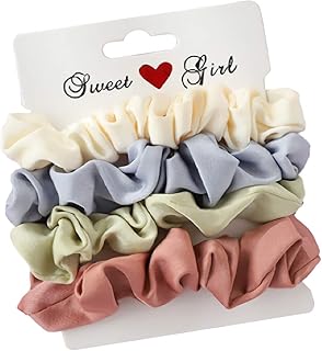 ふわふわボリューム シュシュ シフォン ヘアゴム フリル エレガント リボン レディース プレゼント 女性 レディース ヘアアクセ 【4点セット】 (パステル)