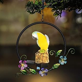 デコレーションライトソーラーパワーハンギングバード、室内または屋外ガーデンヤード用防水樹脂アートナイトLEDランプ (インコ)