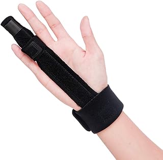 ばね指 サポーター 突き指 骨折 腱鞘炎 関節痛 リハビリ 人差し指 手 親指 全指適応 左右兼用 フリーサイズ 調節可能 (指サポーター手首, 黒)