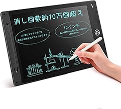 電子メモ 電子メモパッド ペン付き ワンタッチ消去 消去ロック機能搭載 電池交換可能 ペン付き お絵かきタブレット でんしめもぱっど 子供 筆談器ボード cr2025 (ブラック, 12)