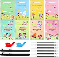 8ピース マジック練習用コピーブック ペン付き 再利用可能 書道ブック マジックライティングペースト 子供の書道 文字描画 数学 ペン付き