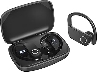 2021新開発版 Bluetooth イヤホン ワイヤレス イヤホン 耳掛け式 Bluetooth イヤホン 運動用ヘッドホン Bluetooth 5.0ブルートゥース イヤホン デジタルディスプレイチャージケース付き 完全ワイヤレス左右分離型ヘッドセット ランニング&運動用ヘッドホン 防水防汗 3D HIFIステレオサウンド AAC対応 自動ペアリング 瞬時接続 IPX5防水 CVC8.0ノイズキャンセリング 片耳/両耳 マイク内蔵 ハンズフリー通話 Siri対応 WEB会議 テレワーク 通勤通学 ランニング 【1年安心保障付き】 (ブラック)
